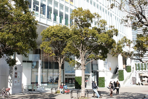 桜木町駅から動く歩道までのエリアには、植木の周りにベンチが備えてあり、そこで休憩する人や待ち合わせする人が目に付いたが、少なくともマリーンベル周辺で待ち合わせしている人はいない。