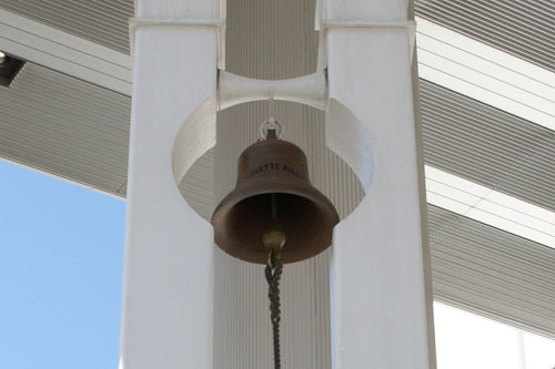「あぁ、あれはコレットマーレのシンボルとして、毎日オープン時に鳴らしています。一応『マリーンベル』という名称が付いていますね」。