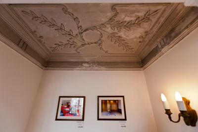 アルコーブの天井には葉のからんだ装飾が残されていた