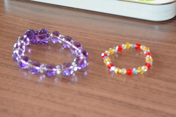 水晶を繋げた手作りの数珠。左が1万円で右が3000円