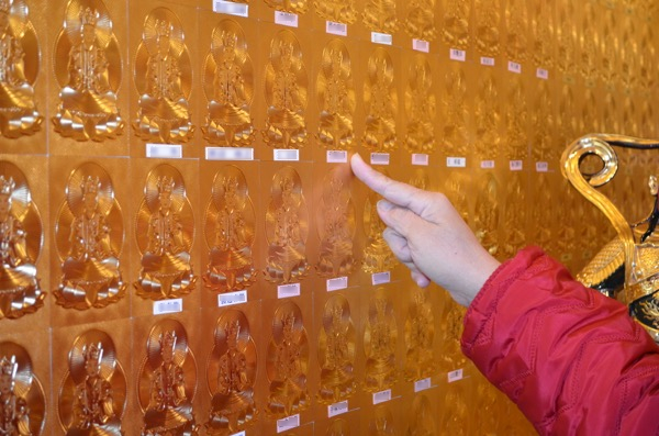 仏像横にあった金色の壁は、贈名者の名前を貼り付けるためのものであった