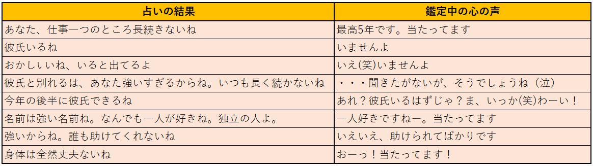 釋さんによる占い結果とその心境をまとめてみた。こんな感じです(クリックして拡大)