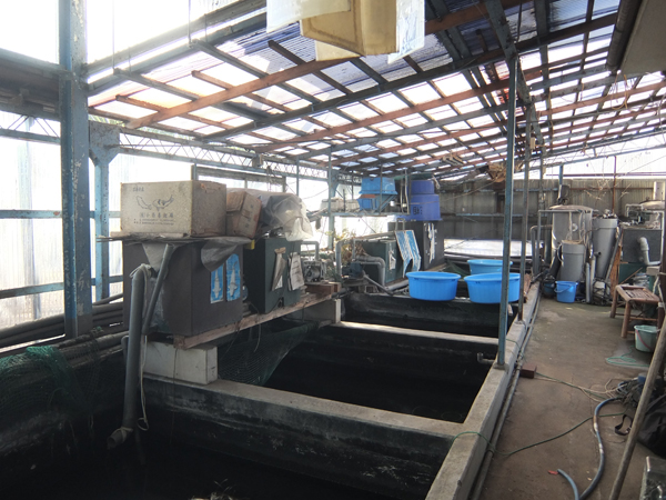 門を入って右手にはコンクリート製の水槽が並ぶ