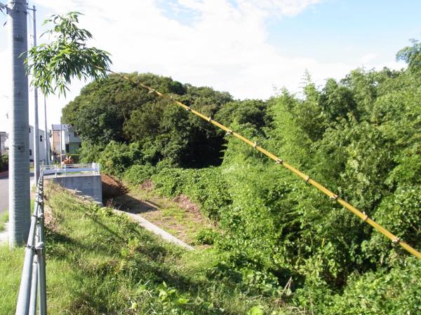 次に駅舎の計画が立っていた場所のひとつ、玉縄台(たまなわだい)方面に向かった。山を一つ越えた先の住宅地のはずれにレールの走っていた場所を発見、周辺住民に話を伺った。