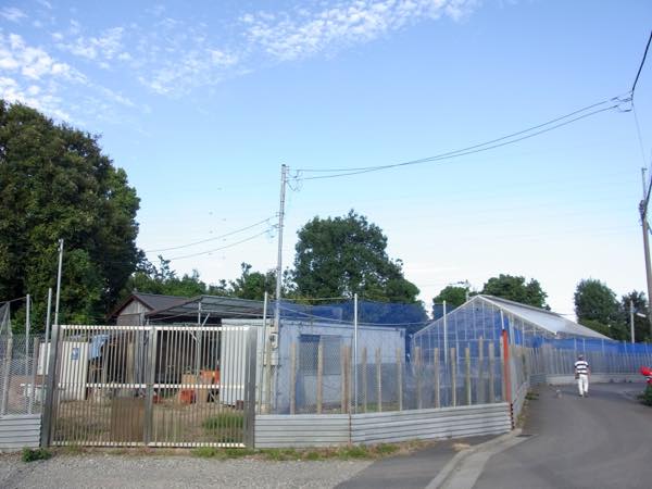 この場所は、現在、農園になっており、ビニールハウスなどがあった。