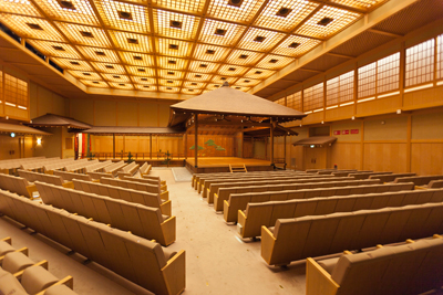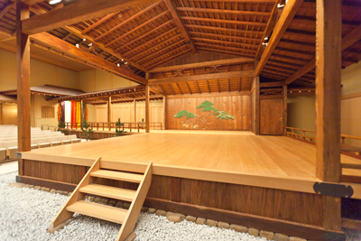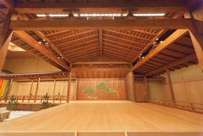 内部にある本舞台は、歴史ある「染井能舞台」を復原したもの。